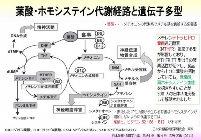 JUGEMテーマ:食事・栄養療法 【うつ状態と栄養】 うつ状態に対する栄養療法として、葉酸を補助薬として使用する治療の有効性が報告されています1)。 現在,食事から摂取できる栄養素の中でうつ状態との関連が示唆されているのは,DHA・EPA・α-リノレン酸等の n-3 系脂肪酸 1),葉酸を含むビタミンB 群です1)2)。 葉酸 は メチオニンの代謝系でメチル基を供給する重要な栄養素です。経口摂取したアミノ酸から生じる有害なホモシステイン の代謝には葉酸,ビタミン B2...