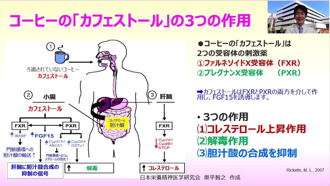 JUGEMテーマ:食事・栄養療法 https://www.dr-okudaira.com/post/coffee_cafestol コーヒーは、炭水化物、脂質、窒素化合物、ビタミン、ミネラル、アルカロイド、およびカフェイン、カフェストール、カーウェオールなどのフェノール化合物を含む、1,000を超えるさまざまな化学物質で構成される化合物の複雑な混合物です(Spiller MA. Caffeine. Boca Raton: CRC Press; 1998. The chemical components of coffee; pp. 97–161. ) コーヒー豆中にはカフェストールが多く含まれているため、コーヒー豆そ...