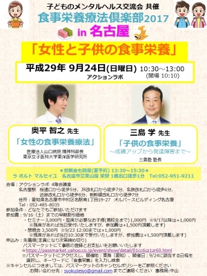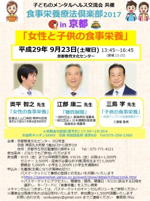 JUGEMテーマ:食事・栄養療法 【江部康二先生&三島学先生&奥平智之先生:食事栄養療法俱楽部2017in京都】 共催:子どものメンタルヘルス交流会 ≪参加お申込みはパスマーケットよりお願いいたします≫ ☆https://passmarket.yahoo.co.jp/event/show/detail/01cc6cz1zr60.html ☆パスマーケットにアクセスし、開催地:東海(愛知)、開催日:9/24に該当する日程を選択し、キーワードに「食事栄養」を入力し検索 「女性と子供の食事栄養」について、 お2人の先生方から学べ...