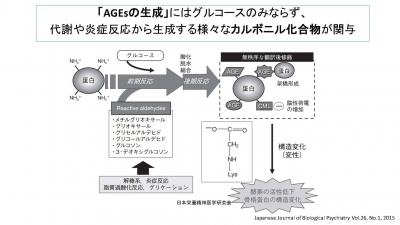 JUGEMテーマ:食事・栄養療法 【AGEsの生成経路は?】 生体におけるAGEsの生成にはグルコースのみならず,代謝や炎症反応から生成するさまざまなカルボニル化合物が関与し,比較的短期間にAGEsが生成する経路も存在することが明らかとなってきました。 Nagai R,Hayashi CM, Xia L, et al(2002)Identification in human atherosclerotic lesions of GA─pyridine, a novel structure derived from glycolaldehyde─modified proteins. J Biol Chem 277: 48905─48912. グルコース以外の蛋白を修...