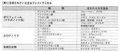 JUGEMテーマ:食事・栄養療法 ●活性酸素は、「食」によって消す● 【フィトケミカル】 phytochemical・・・植物中に存在する天然の化学物質 フィト・・・・ギリシャ語で「植物」 ケミカル・・・化学物質 ★活性酸素を無毒化する『抗酸化作用』 ネギやニンニクなどの植物のもつ独特の「色素」「香り」「辛み」「苦み」の成分。 〜例〜 ルテイン➡トウモロコシの黄色 リコピン➡トマトの赤 カロテン➡ニンジンのオレンジ色 アントシアニン➡ブルーベリー...
