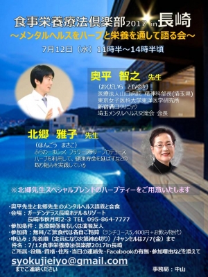 JUGEMテーマ:食事・栄養療法 【食事栄養療法倶楽部2017in長崎】 〜メンタルヘルスをハーブと栄養を通して語る会〜 7月12日(水)11時半〜14時半頃 ≪教育講演≫ 〇奥平 智之(おくだいらともゆき)先生 医療法人山口病院 精神科部長(埼玉県) 東京女子医科大学東洋医学研究所 新宿溝口クリニック 埼玉メンタルヘルス交流会 SMN 会長 http://www.saitama-m.net https://www.facebook.com/mentalhealth.net ☆Dr.奥平 プロフィー...