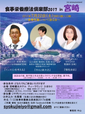 JUGEMテーマ:食事・栄養療法 ※この会はすでに満席となっております 【食事栄養療法倶楽部2017in宮崎】 座談会2017年7月22日(土) AM10時〜12時 奥平智之先生と亀川寛大先生と長野仁美先生の座談会 〇奥平 智之 (おくだいら ともゆき)先生 医療法人山口病院精神科部長(埼玉) 東京女子医科大学東洋医学研究所/新宿溝口クリニック 演題:『冷えと鉄欠乏』 https://www.kamponavi.com/doctor/d65mizoguchi.html ☆Dr.奥平 プロフィール☆彡 ★Dr.奥平 講座案内★ ☆Twitte...