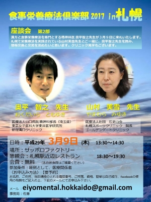 JUGEMテーマ:食事・栄養療法 【Dr.奥平の栄養解析講座】 食事栄養療法倶楽部2017in札幌 2017年 6月11日(日)14:30〜17:00 〇奥平智之(おくだいらともゆき)先生 医療法人山口病院 精神科部長 新宿溝口クリニック 栄養療法外来 埼玉メンタルへルス交流会 会長 https://www.kamponavi.com/doctor/d65mizoguchi.html http://www.skincare-univ.com/healthcare/adviser/doctor/profile/000625 http://www.skincare-univ.com/healthcare/adviser/doctor/profile/000625/...