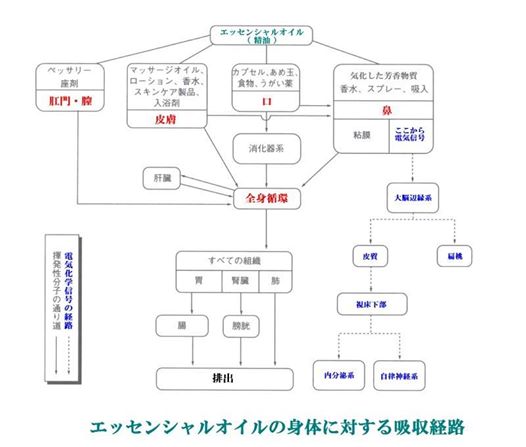 精油成分の作用は、リラックス作用だけではなく 血行促進やホルモン作用、水分調整など多くの効用があり 各臓腑にも働きかけてくれることができます。 【 芳香成分の吸収方法 】 皮膚 ……… 塗布から 呼吸器 …… ディフューザーやお風呂など、芳香浴から 経口※ …… 精油を専用の希釈用基材と混ぜての内服 フローラルウォーターは精油ではありません 直腸・膣※… 座薬や膣剤を利用し、粘膜から ...