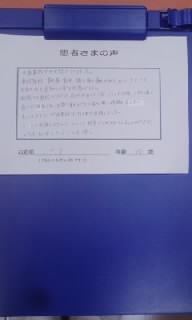 交通事故でお世話になりました。事故当初,首や肩,背中,腰に強い痛みがあり,めまいもひどく,日常生活を送るのも大変な状態でした。病院への通院だけでは,症状が良くならず,こちらで治療してもらう事で痛みが緩和され,回数を重ねるごとに痛みの無い時間が長くなり,今ではマラソンが出来るようになるまで回復しました。ここまで回復できたのはひとえに院長はじめスタッフの方のおかげです!どうもありがとうございました。お名前 T.Y 年齢 38歳 女性■ 神戸もとまち整骨院 ☎ 078-331-3020 ■