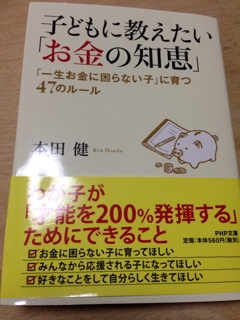大好きな著者の本田健さんが子育てについて書かれた本。 読まない訳にはいかないですよね~。笑 子どもに教えたい「お金の知恵」 (PHP文庫) さて、著書の中で心に留まったのが 『どんな親でも与えられる子供へのギフト』です。 1.感情的な安定 2.信頼 3.高い自尊心 どんな親でも洩れなく伝えられるはずなのに 一番伝えることが難しそうな部分。 伝え方のヒントもあり、一つづつ実践をしてみたい。 こんな気にさせてくれました。 また、子供へお金の事をどのように伝えるか? と言うことの前提となる...