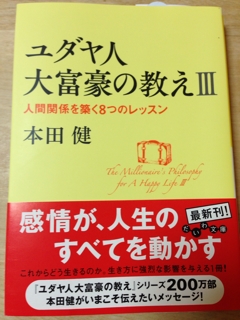 今週末は、じっくりとお勉強に出かけます。 その予習のために読んでいる本がこちら ユダヤ人大富豪の教えIII ~人間関係を築く8つのレッスン (だいわ文庫) 以前読んだことがある本だったと思ったら やっぱり読んでいました。汗 復習も兼ねて読み進めると 本を通して学んだことがまだ身についていないことに気が付きました。 身に付けてこそ本を読んだかあるのに・・・。 さて、読み進めて目に留まった言葉が 『感情とうまく付き合えるようになると、振り回されることは少なくなる。 それどころか、人生のガ...