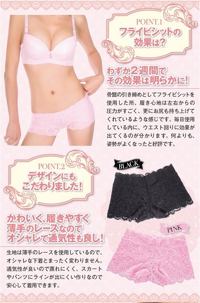JUGEMテーマ:肩こり、腰痛 ↑ フライビシットにはどの様な特徴が あるのか、お伝えして行きますね。 このフライビシットは「形状記憶パワーネット」 に内包された『骨盤ワープ圧』で ・腰を正しく締め付けます そのため、骨盤のゆがみを矯正し、 腰の負担を軽減してくれます、 また、レース素材はナイロン95%、ポリウレタン5% で動植物繊維ではないので、 ・劣化しにくい というメリットもあります。 劣化してくると、腰のサポート力が低下したりと、 使いものにならなくなり...
