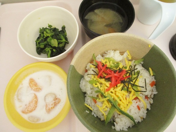 入院14日目。 昼食を頂きました。 混ぜ寿司 菜の花の辛し和え JUGEMテーマ:病院へいこう!