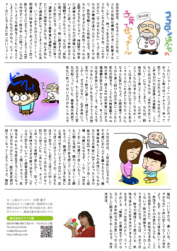 JUGEMテーマ:ウツ・キレる・情緒不安定・イライラ・不眠・うつ病・人格障害・不眠症・虐待・過食症・拒食症・依存症 東京オフィス お問い合わせ 03-6276-7800 http://officeyu.info/counseling_toukyou.html 三重オフィス お問い合わせ 059-355-0539 http://officeyu.info/counseling.html