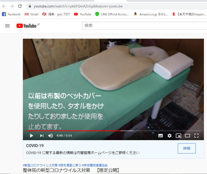 先日の記事で 整体院の運営・取り組み【限定公開】新型コロナウイルス対策 http://seitaino-k.jugem.jp/?day=20200514 を動画でアップしました。 動画の中で触れていませんが 気になる事を追加しておきます。 マスクについて ・施術中、マスクは必ず着用します ・施術中は、顔を含めマスクに極力触れない ・一人施術後は、アルコール消毒か次亜塩素酸水で消毒し交換 外に干して、再利用 ...