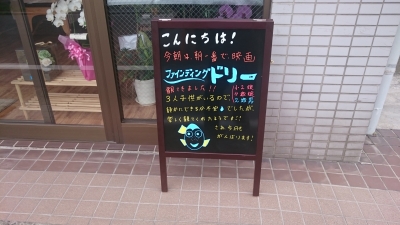 JUGEMテーマ:子育て日記 JUGEMテーマ:整体 朝イチで、仕事前に家族で観てきました! おとといの金曜日の夜、テレビでニモをやってまして、いつもは9時に寝かす子達が、最後まで夢中で観てたんですよね。よく起きてられたなー。 いつもなら、有無を言わさず寝かしつけるのですが、週末だったのもあり、特別に目をつむりました。 そのこともあり、今日は、続編にあたるドリーを。 テレビ的には番宣大成功な我が家。 さて、お店に戻り、仕事モード! オープン時、大き...
