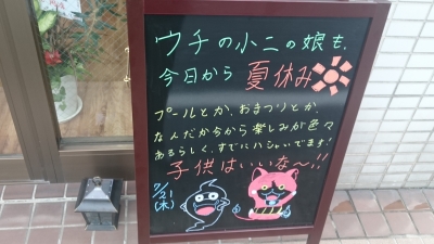 JUGEMテーマ:子育て日記 JUGEMテーマ:整体 大人の私たちには、遠い思い出ですね〜! ウチの娘は今日から夏休みだそうです。 とはいえ、共働きの我が家は、学童保育に行ってもらうので、結局学校行くのとスケジュールは変わらないんですけどね。 それでも、ウチの娘は学童大好きなので、やっぱり嬉しいようです。 という訳で、今日の看板⬇