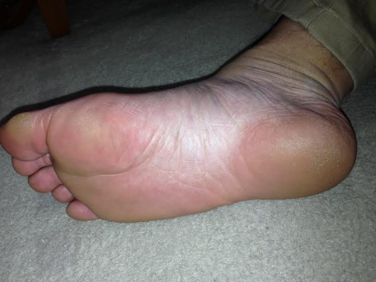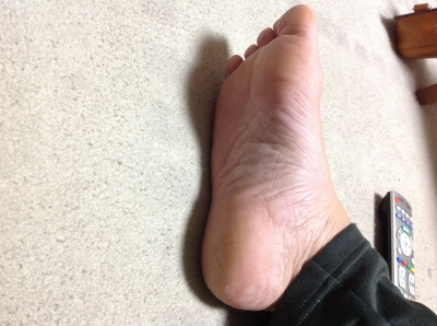 今日は、すごく皮が剥けていました というのも、靴下を脱いだ瞬間、足裏を見ると、 あまりの汚さに・・・・ さすがに、この足裏は写真にとれず、すぐに風呂に入り、足裏をゴシゴシと・・・ すると、排水口にみるみる、足の皮が 皮が、取れている状態ですので、少しこすると、みるみる取れていきます。 これは、昨日の状態の写真です(^^) 薄い皮膚が剥けてきて、かかとの角質が少し浮いているくらい でした。 昨日は、少し浮いていた、かかとの角質も、靴下の中で、 ペロリんと...