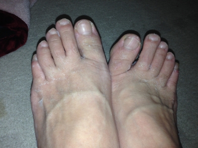 とうとう変化がでてきました(^^) お風呂に入る前は、今日も変化なしだなぁ〜と思い、いつも通り入浴・・・あっ、ちなみに私はおっさんですので でも、お風呂上り、足をみると、なんと!薄皮が剥けてきている!! 足裏も、微妙に皮の薄い所が剥けてきている 皮膚の薄い所が剥けてきてます(^^) 日焼けした皮がむけるような感じです(^^) 足の裏も、昨日までなんの変化もありませんでしたが、 指の間の皮膚の薄い所や、角質の少ない足の裏の皮が めくれてきました まだ、ペロリん!!と...