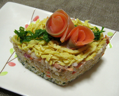 江藤さんの無農薬玄米で、ちらし寿司の練習をしました^^ 切干大根、にんじん、椎茸、油揚げをみじん切りにしてお醤油で煮て、寿司飯に混ぜました。 上段の寿司飯には、鮭を焼いてほぐしたものと、赤かぶのお漬物を細かく刻んで。 さっぱりと大人向けかしら。 でも可愛くしたかったので、飲みのもの紙パックを高さ5cmぐらいに切って型をつくり、菱形にしてみました♪ おひなさまの予行演習です♪ 玄米を寿司飯にすると、お米がパワーありますので、混ぜる具材もはっきりした味や食感のものがいいみたい。 ...