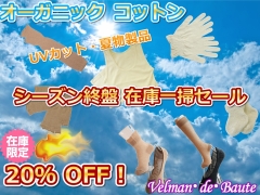 【幸せ探しの小さな窓】 ■オーガニックコットン UVカット・夏物製品 在庫一掃セール 2014年8月20日〜 この春〜夏、沢山お買い求めいただきました! UVカット製品・夏物製品の在庫一掃セール開催致します。 在庫限定で20%OFFにてご提供! カートにて売り切れ表示が出ましたらセール価格での販売は終了となります。 各製品の在庫数は相違しますので、色違いなどご確認ください。 製品自体は生産完了になるまでお取扱い致しますがセール価格での販売は在庫限りです。お得なセール期間...