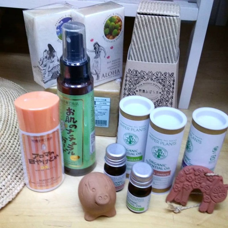 楓杏で扱っている オーガニックコスメやアロマ じめじめするこの時期も 心地よ〜く、使えておすすめです! ↑上から ムーンソープの石けん(moonsoap ) アレッポの石けん 手摘みバラ水(ナイアード) アロマの日焼け止め(沖縄子育て良品 ) お肌のナチュラルガード(沖縄子育て良品 ) オーガニックのアロマオイル(彩生舎 ) 素焼きのアロマディフューザー(シャプラニール ) スタッフも愛用中のアイテム 厳選して販売中です。 店内では、アロマディフュ...