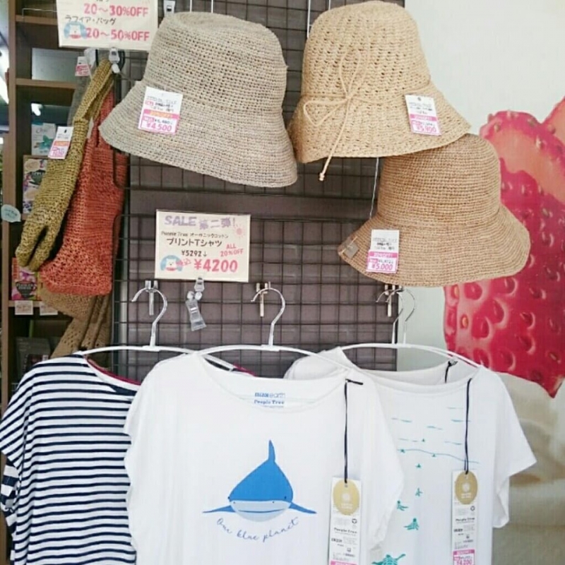 本日より、夏セール第二弾、始まりました! ラフィアの帽子&かごバッグ 、20〜50%OFF! People Treeのオーガニックコットン・プリントTシャツ、20%OFF! ようやく夏本番。 軽くて涼しげなラフィア、着心地抜群のTシャツ、 お日様対策に、夏のおしゃれに、 どうぞお役立てくださいね〜。 JUGEMテーマ:フェアトレード JUGEMテーマ:ナチュラル☆ファッション JUGEMテーマ:オーガニック