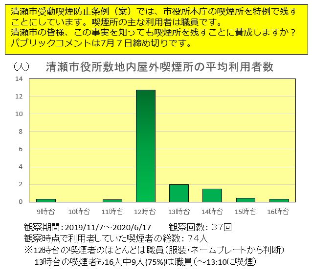 今や、庁舎の敷地内完全禁煙の流れは止められません! 💛💛💛 「市民の健康を守る会」は、昨年の”アイレックまつり”、”ふれあいまつり”に団体として参加し、清瀬市役所敷地内喫煙所および清瀬駅北口公設喫煙所についてのアンケートを行いました。2020年4月から改正健康増進法と東京都受動喫煙防止条例が全面施行されましたので、今から JUGEMテーマ:煙草による被害を無くすために 実施したら更に変わってくることでしょう。 💛💛💛 ※ 東京都内の...