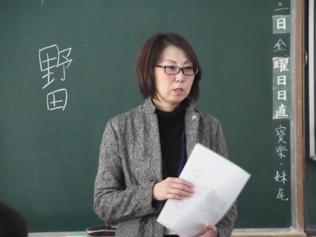 今年度最後の「いのちの授業」に、福平小学校へ。 福田さん、野田さん、三好の3人で。 とっても元気な子どもたち4クラスに授業をしてきました。 自分たちに出来ることを精一杯に伝えてきました。 これで今年度の授業はすべて終了! 小学校21校、中学校4校の25校を終えました。 1年間で1808名の子どもたちに出会えました。 また報告書が完成したら、報告します! 語り手のみんな、本当にお疲れ様でした!! JUGEMテーマ:がん全般