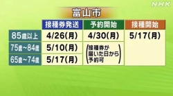 JUGEMテーマ:予防接種 「NHKオンライン」→「各地のニュース」→「富山」を選択→「もっと読む」 →「ワクチン接種スケジュール 15市町村まとめ 4月26日 19時46分」 2021.04.26(月)の他のニュース >>