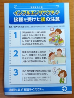 JUGEMテーマ:予防接種 この冬もエレクトーン&ハンドベルの演奏会を色々と抱え、何が何でも倒れられないので、インフルエンザ予防接種を打ってきました。 やっぱり注射は痛くて大嫌い!(><)