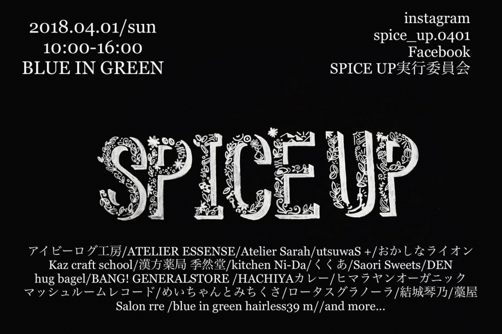 JUGEMテーマ:漢方 こんにちは 漢方薬剤師のキリコです。 祝日も元気に営業しています イベントのお知らせでございます 4月1日(日) 『SPICE UP -日々の暮らしにスパイスを-』 というイベントが開催されます ご縁あってお誘いいただき、われわれ季然堂も出店いたします。 今回のイベント名の 『spice up』は「風味豊かにする、より面白くする」 という意味だそう。 テーマ『SPICE』をキーワードに、香辛料のスパイスはもちろん、普段の日常生活...