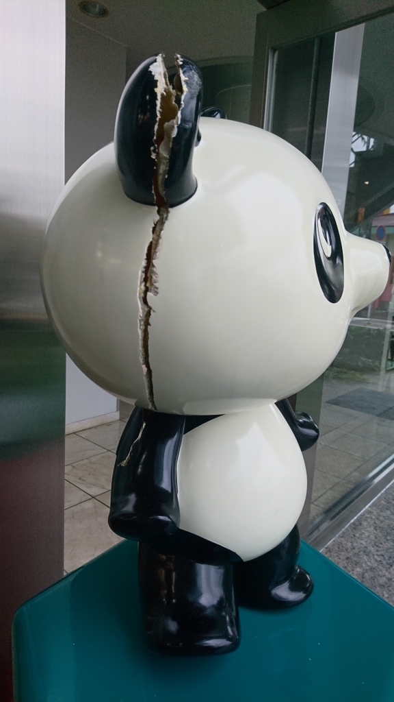 JUGEMテーマ:漢方 こんにちは。 漢方薬剤師のキリコです。 前々回のブログで「雨は大好き〜♪」「ゲリラ豪雨は慣れている!」なんてのんきにのたまわっていましたが。 昨日の暴風雨で看板パンダのシンシン君が転倒💦 大ケガを負わせてしまいました。 「風がすごいなー」とのぼりが折れないか気にしながら眺めてはいましたが、うっかりシンシン君のことを忘れていました。 風の強いところに放置されていたシンシン君、あまりの暴風雨に顔面から転倒。 バーンという大...
