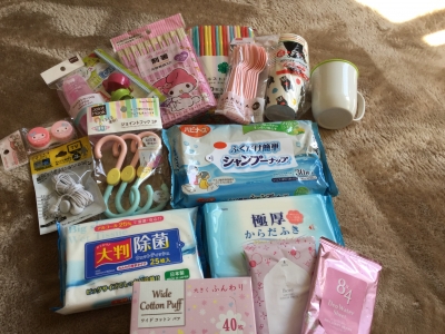 JUGEMテーマ:女性の病気 2016年4月 みなさんのブログを参考に少しずつ入院グッズを買い出し。 汗ふきシートは去年の残りがあった!!乾いてないから使えそう♪ ダイソーとセリア様で。 割り箸、ストロー、蓋つきカップ、ペットボトル用ストロー、S字フック、紙コップなどなど。 流さないシャンプーをドラッグストアーで探していたら、シートタイプのモノ発見! 介護用品の売り場にありました。 入院と手術はやっぱり怖いし緊張もあるので、つい可愛いデザインで揃えたくなります! 下着もおへその上まであるパ...