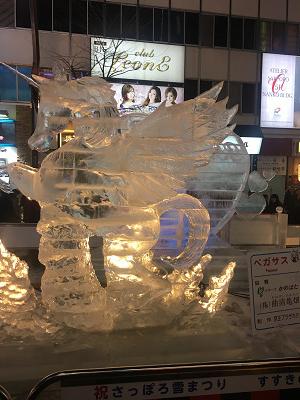 JUGEMテーマ:脳梗塞 久しぶりの更新第二段。 雪祭りの続きです。 今度はすすきの会場。 こちらは氷像の展示。 ペガサスや イルカちゃんが氷像になっております。 そしてこちらは人魚でしょうか。 とても綺麗に作っております。 そして我らのガリガリ君。 良くできておりました。 その他にも多数展開ありましたが、どれもライトアップされていたためとても幻想的で素敵で...