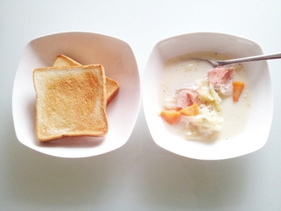 おならがでるでる。 まだガスがあるようです。 検査の翌日は柔らかいもの、消化しやすいものと言われていますが 硬めの野菜食べちゃいました。 クリームパン食べちゃいました。 炎症があったので暫くはドロドロ食事にしようかと思いましたが無理だった。。。 <朝> 豆乳シチュー(鮭) 食パン(浸して食べた) <昼> 豆乳シチュースープパスタ(ささみ) ヨーグルト 煮詰めてしまって豆乳を分離させてしまった。失敗。 塩分と熱で分離すること知ってたのに悔しい! <おやつ> 大福 クリー...