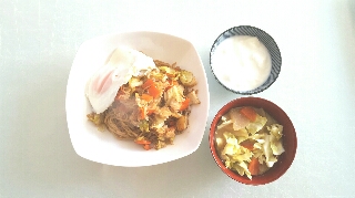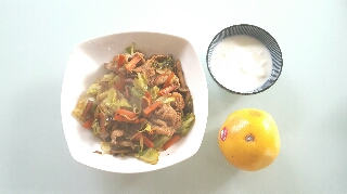 <朝> 大根 人参 いり卵 ヨーグルト グレープフルーツ <おやつ> まめだいふく <昼> 米が食べたかったのでカツ丼(お弁当) キャベツ <おやつ> 信玄餅(食べやすいタイプ) <夜> キャベツと豚肉の炒め物 ビール 体調:便秘 腹痛...