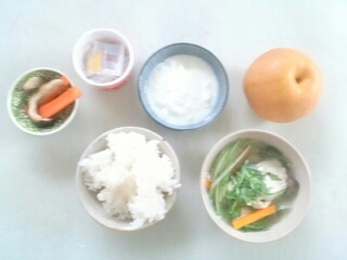 <朝> お米パン アスパラ リンゴ ヨーグルト 鮭とほうれん草の豆乳シチューのようなもの <昼> 野菜スープ(鶏肉) 納豆 ごはん <おやつ> 無し <夜> 昼の残り 体調:便秘。 腹痛 変な音 無し。血 あり。 体重:変わらず(基準-3.0kg/...