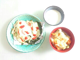 喫茶店めぐり楽しい。 ま、はずれもあるよね。 <朝> ヨーグルト きのこの醤油?炒め ほうれん草オムレツ プルーン ふりかけ ごはん 味噌汁 <昼> ナポリタン なんか不思議な味!ちょっとすっぱい気が…。 とろけるチーズ?そのまま(笑) 不思議な味なので店名は伏せます。 フルーツやサラダが乗ってます。 <おやつ> クリームパンと甘いパン パンはおやつです! <夜> 豆腐に味付けきのこの炒め物(油はもちろん使ってません) 体調:普通便。 腹...