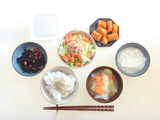 内視鏡検査以来便秘なんだけど大丈夫だろうか・・・ <朝> 鶏とじゃこのチャーハン <飲んでみた> なんだかお肌が綺麗になりそう <昼> 作る気力なし! ひじきの煮物 レタス 鶏のメンチカツ <夜> かぼちゃ(なんだか凄く瑞々しくて甘い) ひじき 鶏の丸焼き? 人参 レタスと新玉葱のサラダ 缶が二本…発泡酒を飲みながらごはんの準備… 体調:便秘。 腹痛 変な音 血 無し。 体重:変わらず(基準-2.8kg/目標+3.8kg) &nbs...