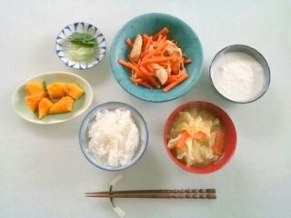 ちょっと前までは1日二食でもいい!と思ってたのに今は食べても食べてもお腹が空く。 胃袋が大きくなったみたい。 体重も増えたまま。 最近は腹筋をしたり歩いたり走ったりしてるんだけど 筋肉が付いた…わけないよね。 こんな短期間で。 運動し始めたから余計お腹が空いて食べ過ぎてしまう。 …米を! <朝> ヨーグルト 青梗菜のおひたし オムレツ かぼちゃ ごはん 味噌汁 <昼> アジフライ わかめごはん 味噌汁 <夜> 味噌汁 人参 かぼちゃ かじきのバジル焼き ...