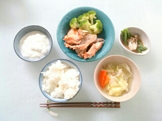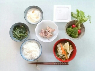 この前久しぶりにお休み取れてしかも二連休で 休みって大事だと思いました。 そしたら欲が出てもう一日休みたくなったけど頑張って働いた。 程々に休まないと心も体もぽっきりいっちゃいそう。 <朝> ヨーグルト 鱈、きのこ、ほうれん草の焼き物?ソテー? ジャガイモにラディッシュをかけるという謎の食べ物。(ゴマドレッシングで食べた) ごはん 味噌汁 <昼> やきぞば 肉無し、たんぱく質は玉子 <夜> 野菜と高野豆腐の玉子とじ りんご 体調:普通便。よかった。 腹痛...