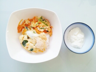 最近バタバタで。 このバタバタが終わらない限り水便が終わらない気がする。 そして最近一日二食。 何故かご飯食べるタイミングを逃してしまう。 逃してしまうというか、おかゆとかばかりで食べるのが楽しくないからかな。 <朝> 写真使いまわしです。 前日の残りのパン。 <夜> 本当は、、、つゆだくの親子丼作ろうと思ったんだけど、、、 水分とばしすぎてしまい味が濃くなり汁が無いのでご飯と絡まず、、、残念。 体調:相変わらず水便。 変な音は無い。 体重:計っていない...