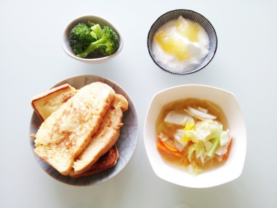 <朝> ブロッコリー ヨーグルト+リンゴジャム フレンチトースト スープ <昼> 飲むヨーグルト リンゴジャム キャベツ ブロッコリー パプリカ メンチカツ パン 久々の揚げ物、、美味しかった〜! <夜> スープに卵入れてみたもの グレープフルーツ 足りなくて チーズ食パン 3枚。 写真は使いまわしなので野菜は食べてません。。。 体調:普通便。ゆるめ。 腹痛 変な音 血 無し。 体重:ちょっと増えた。(基準-2.3kg) パンめ!糖質め!水分め! ...