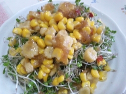 JUGEMテーマ:糖尿病と向き合う お姑さまの「 数値 」も、安定したものの、 好物が「 菓子パン 」なことは、変わらず・・・ せめて、裏面の「 カロリー表 」を、 見るようにしてもらいましたが、 でも「 めがね 」を、かけずに私に 「 見て。」 と、おっしゃることに、変わりはなく・・・ せめて、と、 サラダの量と、材料に凝ることしました。 アルファアルファと、ヤングコーン、スイートコーンです。 冷蔵庫にも、レタス・もやし・トマトは、かかさないように、気をつけることにしました。