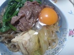 JUGEMテーマ:糖尿病と向き合う 「 すき焼きが食べたい。」 とか、わがままな主人の意見です。 しかし、美味しいものは「 高カロリー 」「 高コレステロール 」ですが・・・ 母君のこと考えて、ほしいものです。 野菜と、こんにゃくをタップリ食べて「 満腹感 」を、つかんでいただくことに。 豆腐とともに別鍋で、じっくり時間をかけて、味を含ませました。 野菜の種類も、増やしました。 ( はくさい・キャベツ・春菊・白ネギ・もやし・しいたけ。 ) 生卵を入れて、お勧めしましたが 「 卵を、止...