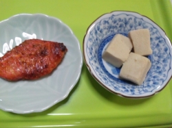 JUGEMテーマ:糖尿病と向き合う この頃、魚のメニューを多めにしています。 骨も、取りやすい「 カレイ 」に。 白身で、あっさりした味なので。 今回は「 醤油みりん味 」にしてみました。 高野豆腐の煮物も、セットで。 彩りと、栄養を考えて「 もやしと、豆苗 」の、野菜炒めも用意しました。 デザートは「 キーウィ 」を、半分。