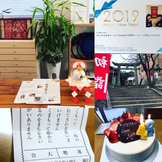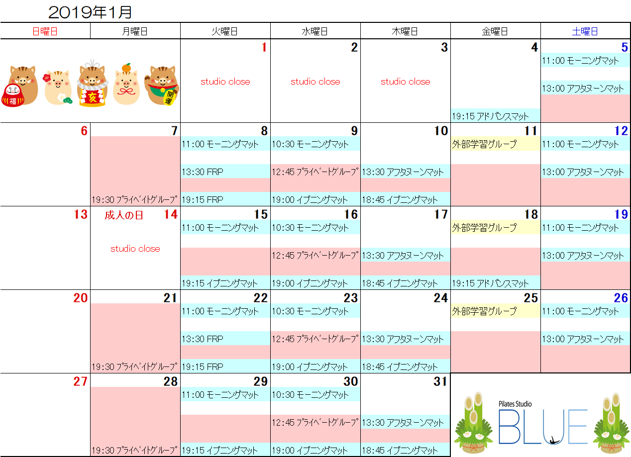 JUGEMテーマ:Pilatis (ピラティス) あけましておめでとうございます! 皆さま今年もどうぞよろしくお願いいたします。 今年も年明けとともに48歳のお誕生日を迎えることができました。 マネージャークーピーともども年女でございます。猪突猛進!まっすぐに進んでいきます。笑! Studio BLUEは4日より通常営業です。 グループクラスは4日アドバンスマット19:15〜からスタートです。 年賀状でもお知らせをしましたが、4月14日(日)はBLUE5周年パーティを出島...