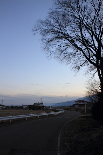 JUGEMテーマ:ウォーキング 1月7日 晴れ 歩くくらい速さでゆ〜っくり長く走りました。 息が続くようになって、ラクに走れるようになりました。 日が落ちるとしん…と寒さがしみます。 有明山の上に金星が光っていました。 以前なら、この星がぼんやりしか見えなかったのです。