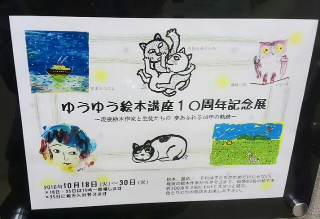 毎日0時に更新します。 社労士千葉幸恵のブログにようこそ! さて、銀座で行われている ゆうゆう絵本講座10周年記念展に行ってきました。 立川ブラインドさんのB1 絵本「嵐の夜に」のきむらゆういち先生の原画なども楽しませていただきました。 きむらゆういち公式HP 新作「されどオオカミ」の原画も! ちょっと、非常階段が映り込んでしまってます・・。 ご愛嬌ということで(^_-)-☆ ブロ友さんの作品「フ...