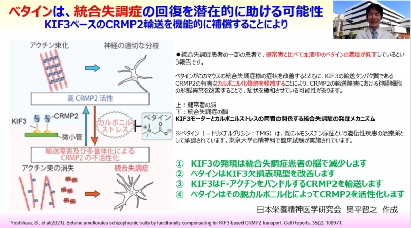 JUGEMテーマ:精神医学(psychiatry) https://www.dr-okudaira.com/post/schizophrenia_and_betaine-3 統合失調症(SCZ)では、脳内のニューロンは全体的な形態学的変化を起こす傾向がありますが、関連する分子メカニズムはほとんどとらえどころのないままです。 SCZのような行動をとるモデルとしてKif3b +/-マウスを使用して、高ベタイン食がニューロンの形態形成と行動に関連する統合失調症の特徴を大幅に軽減できることを発見しました。 KIF3モーターによるコラプシン応答メディ...