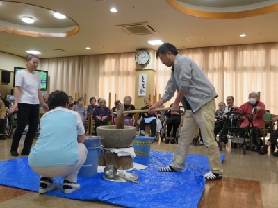 近頃は急に寒さが増してきました。 今年も一年の締めくくりとして『餅つき大会』を行いました。 息を合わせて、力を込めて 餅をついていきます。 たくさんの利用者様にも参加していただきました。 「これは力がいるねぇ・・・」楽しめた様子です。 この方は昔からご自宅で餅つきを行っていたそうで、とても慣れた様子でした。 アドバイスもいただきました。 ついたお餅を皆さんで丸めて鏡もちをつくっていきます。 昔を思い出しなが...