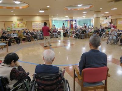 12月に入り寒さも本格化してきました。今年も『クリスマス会』を行わせていただきました。 今年もボランティアの「劇団 月うさぎ」さんが来て下さり素敵な劇を演じて下さいました。 ワクワクしながら始まるのを待っています 演じて下さった劇は「へっぴりよめご」というお話です。 大きなおならをするお嫁さんが、おならをするたびに、お母さんを吹き飛ばしてしまい、一緒に家に住めなくなってしまう悲しいお話です。しかし、最後はおならが役に立つハッピーエン...